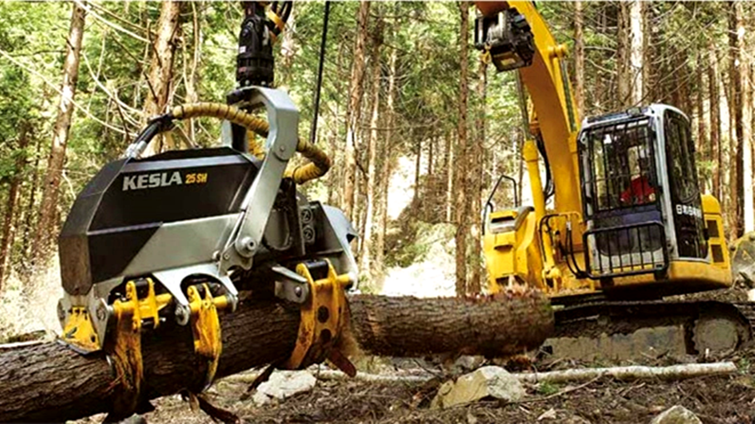 它张开的时候有1.7米宽,凡是环境下和沉型轮式收割机或者工做分量17-22吨的挖掘机搭配利用。砍树的时候,看着都替他焦急啊。我必然要光头强领会一下这款KESLA 28RH-II砍伐机头。1.6米长,光头强每天都拎着个电锯砍树,